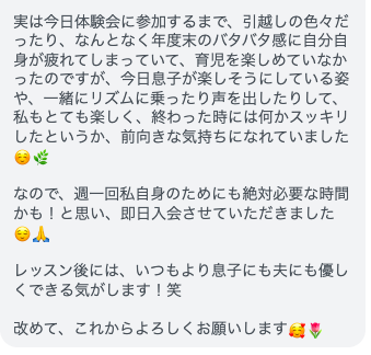 リトミック体験後、即入会を決めてくださったママさんからの声